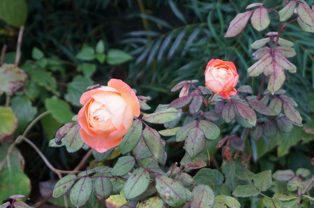 2025-11-02 今朝の庭 本日晴れ 21-11度 60% 29km/h 秋バラが美しいです ボレロ レディエマハミルトン あと少し待てばつるバラの誘引が出来ると思うと楽しみです 今日からはてなスター表示やめました(表示早くなってびっくりしてます)いままでスターありがとうございました!